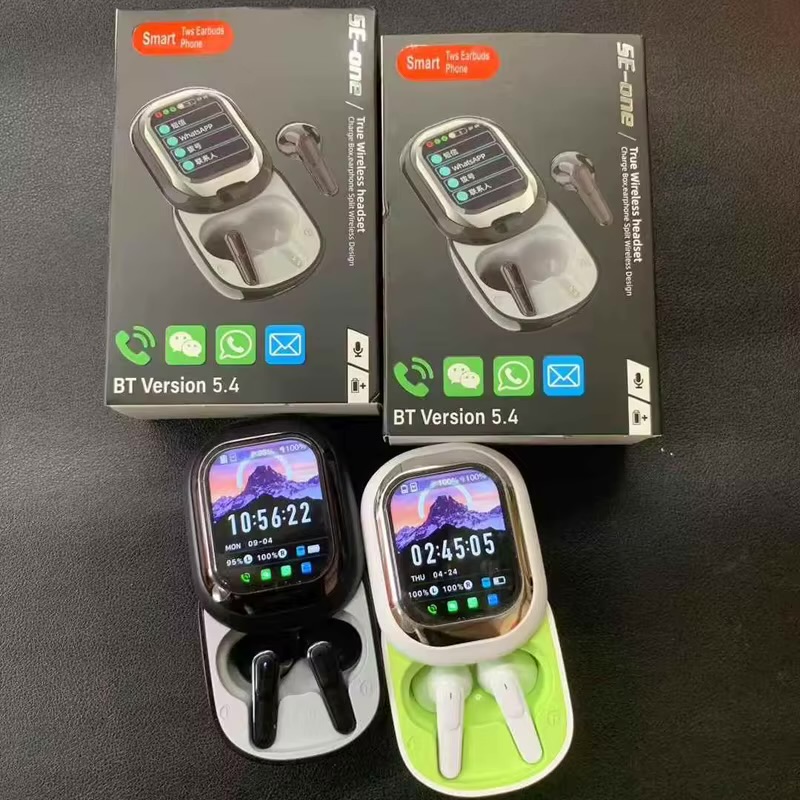 هندزفری بلوتوثی SE-ONE مدل Smart TWS با نمایشگر لمسیهندزفری بلوتوثی SE-ONE Smart TWS ترکیبی از طراحی مدرن و امکانات هوشمند است. این مدل با بلوتوث نسخه ۵.۴ اتصال سریع و پایدار را فراهم میکند و از کاهش نویز محیطی (ENC) برای مکالمهای شفاف بهره میبرد. کیس شارژ دارای صفحه نمایش لمسی رنگی است که ساعت، وضعیت باتری، تماسها و اعلان پیامها را نمایش میدهد
