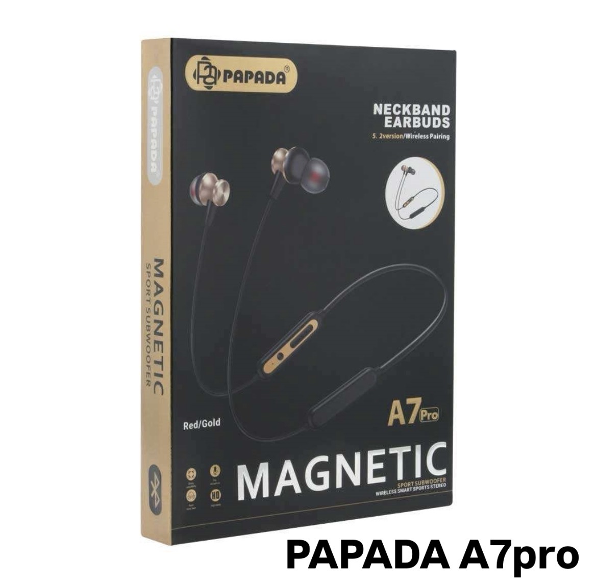 هدفون پاپادا بی سیم A7 PRO قابلیت اتصال بصورت بی سیم از طریق بلوتوث نسخه 4.2 به موبایل، تبلت یا دستگاه های دیگر شما را دارد که برد آن 10 متر می باشد. و گوشی های آن دارای قابلیت آهنربایی می باشند و می توانند از پشت به یک دیگر متصل شوند. A7 با وجود داشتن بدنه پلاستیکی دارای وزن 35 گرمی می باشد که باعث راحتی شما در هنگام استفاده از آن می شود. باتری این هدفون توان پخش موسیقی به مدت 7 ساعت را دارای می باشد که مدت زمان خوبی برای پخش موسیقی است. در نهایت این هدفون می تواند با ظاهر زیبایی که دارد در کنار کارایی هایش گزینه مناسبی برای شما باشد
